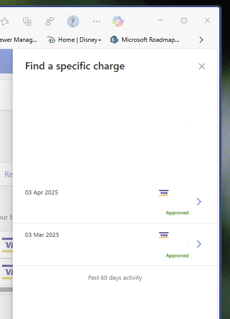 This will load up the recent transactions for that card. This will include transactions from other Microsoft accounts that have used your bank details too.