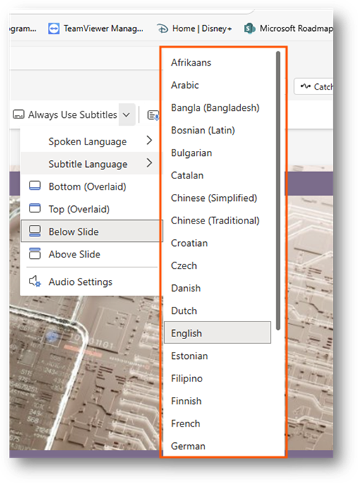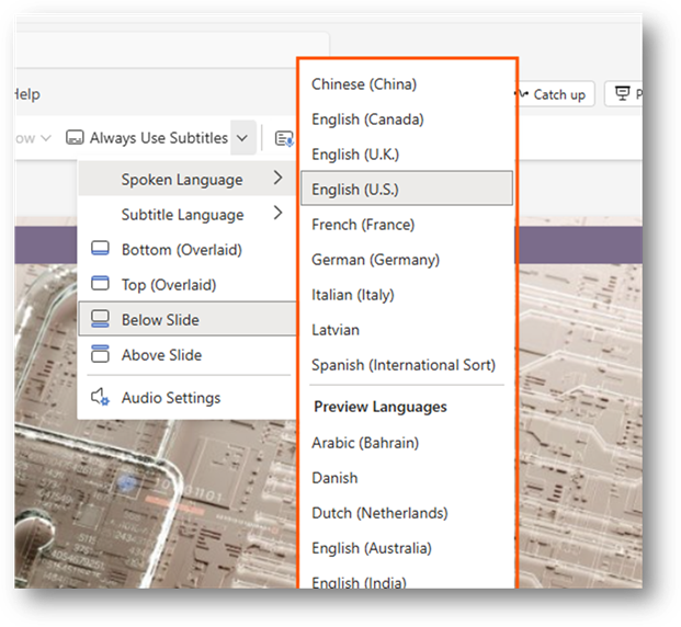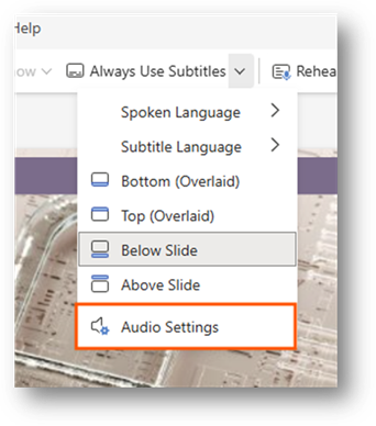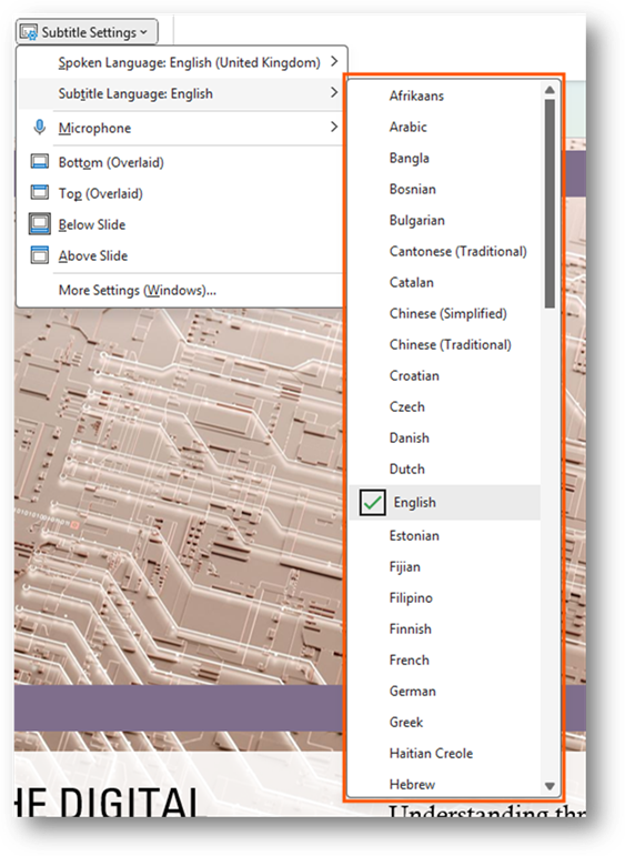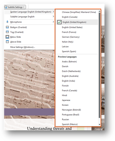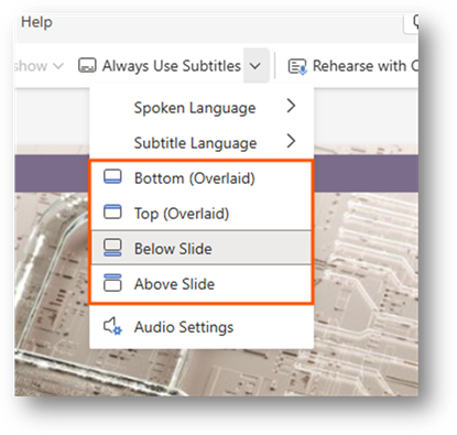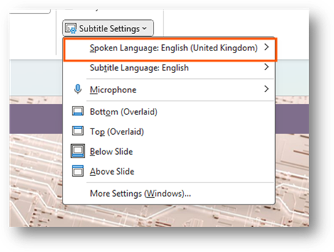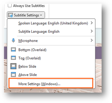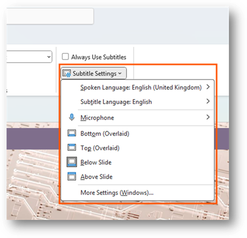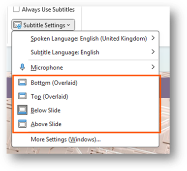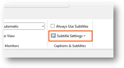 You can customize the settings for the subtitles. This allows you to do things like change the language or change where they are displayed when presenting. It is a way for you to adjust the settings for your audience.