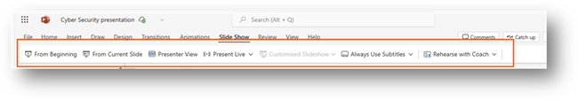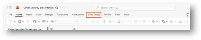 When you have opened your PowerPoint on a web browser, please navigate to Slide Show on the ribbon.