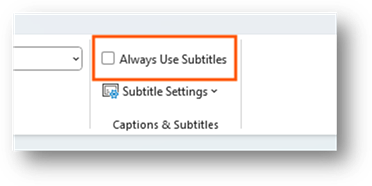 You will be able to see a check box that says, “Always Use Subtitles” and an option under that that says, “Subtitle Settings”. To enable the subtitles for the presentation, you can tick this box.
